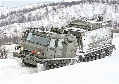該車“體重”較輕,總重11噸,加上強(qiáng)勁的動(dòng)力和履帶式設(shè)計(jì),它能輕松穿越灌木叢和沼澤地,突破水障。如果被水淹沒,駕駛員可啟動(dòng)真空泵,使車輛漂浮起來?!鞍⒘羯耆恕比匦诬囎詭А芭瘜殹薄晟频募訜嵯到y(tǒng)和燃料預(yù)熱器。這種設(shè)計(jì)可讓該全地形車從容應(yīng)對(duì)極寒天氣。