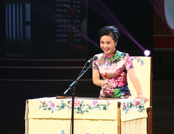 第二批國家級非物質(zhì)文化遺產(chǎn)傳承人王麗堂在表演揚(yáng)州評話的代表作《武松打虎》 圖片來源:中國揚(yáng)州曲藝網(wǎng)