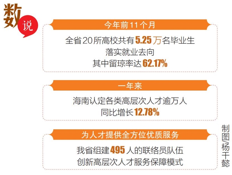 一年來(lái),海南各級(jí)各部門(mén)著力當(dāng)好為人才服務(wù)的“紅娘”“保姆”“店小二”,做到“待遇留人、事業(yè)留人、感情留人”,進(jìn)一步提升了廣大人才扎根海南、建設(shè)海南的認(rèn)同感和歸屬感。