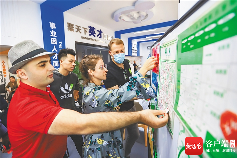 ??趪?guó)際人才之家舉辦外籍人才創(chuàng)業(yè)沙盤(pán)推演培訓(xùn)課,為外籍友人帶來(lái)“沉浸式”的創(chuàng)業(yè)體驗(yàn)。海南日?qǐng)?bào)記者 袁琛 攝