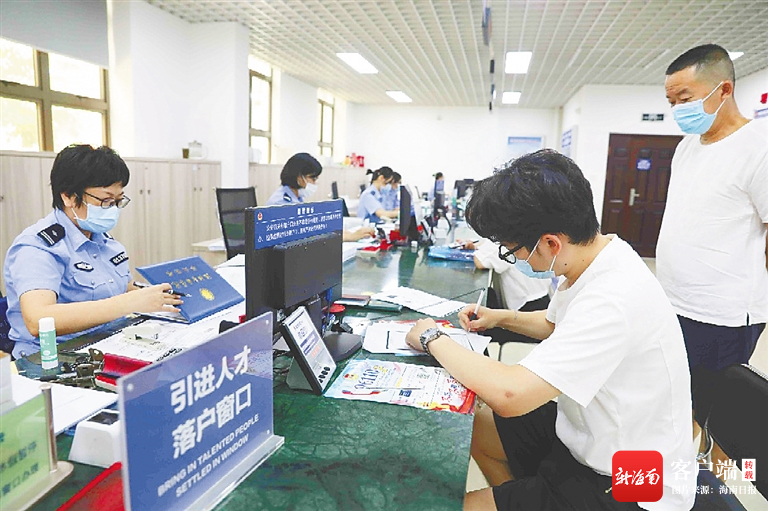 在??谑泄簿置捞m分局辦證中心,工作人員給引進(jìn)人才辦理落戶業(yè)務(wù)。海南日?qǐng)?bào)記者 張茂 攝