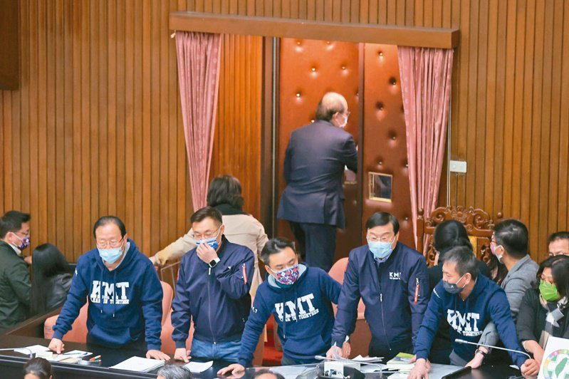 民進黨團總召柯建銘(背對推門者)接連出手讓臺當(dāng)局行政總預(yù)算、“地制法”修正草案逕付二讀,國民黨“立委”即使霸占主席臺也無力制衡執(zhí)政黨。記者葉信菉/攝影