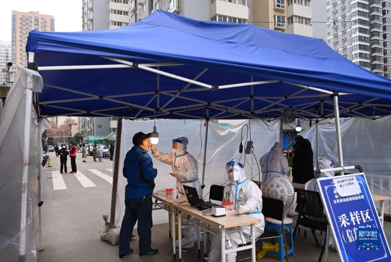 12月27日,在西安市碑林區(qū)張家村街道太白社區(qū),居民在接受核酸檢測(cè)。