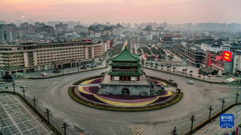 12月27日拍攝的西安市鐘鼓樓廣場(chǎng)(無(wú)人機(jī)照片)。