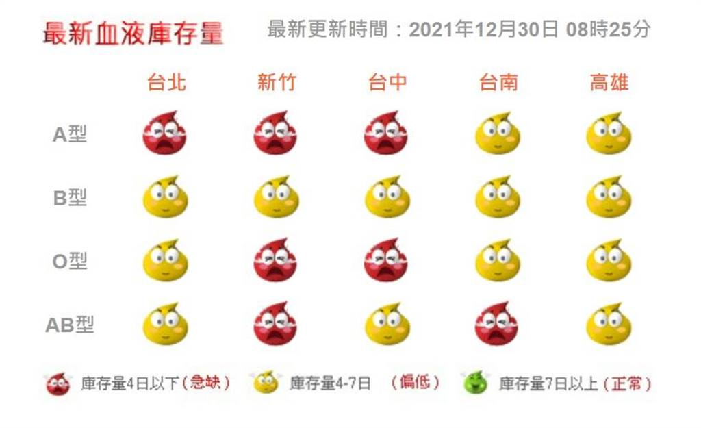 全臺血液庫存量告急,尤其A型血最缺,全臺僅剩4天存量。