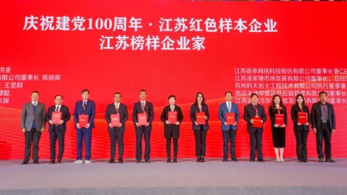 同時,本次論壇還舉行了在各領(lǐng)域行業(yè)有突出貢獻的企業(yè)及企業(yè)家頒獎典禮。江蘇銀承憑借多年在數(shù)字經(jīng)濟領(lǐng)域里的卓越貢獻榮獲“慶祝建黨100周年?江蘇紅色樣本企業(yè)”稱號,曹石金榮獲“慶祝建黨100周年?江蘇榜樣企業(yè)家”稱號。