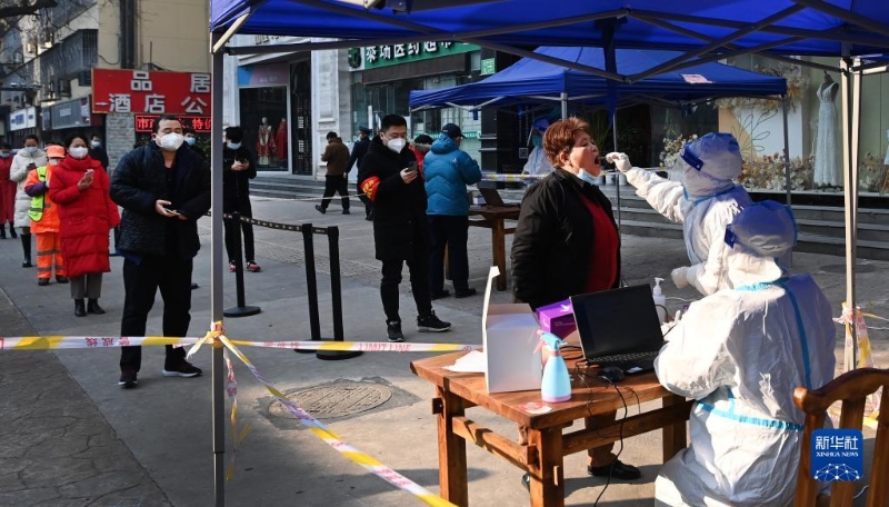 1月2日,市民在西安市新城區(qū)排隊(duì)進(jìn)行核酸檢測。