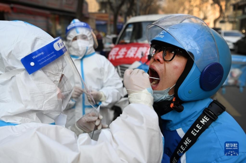 1月2日,西安市碑林區(qū)安東街社區(qū)檢測人員開展流動(dòng)服務(wù),對快遞人員進(jìn)行核酸檢測。