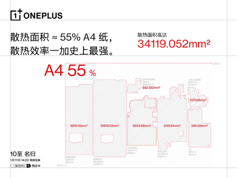 一加10 Pro還在散熱系統(tǒng)打磨上做足功夫。此次打造的空間散熱系統(tǒng),整體散熱面積相當于A4紙的55%大小,材質(zhì)上由VC均熱板銅、石墨片、散熱硅膠、金屬框架等五重散熱材料組成。系統(tǒng)還采用了熱源分散堆疊設計,形成散熱通道,使得散熱更高效。讓用戶在各個場景,尤其是游戲場景能夠長時間穩(wěn)定發(fā)揮,告別手機發(fā)熱痛點。