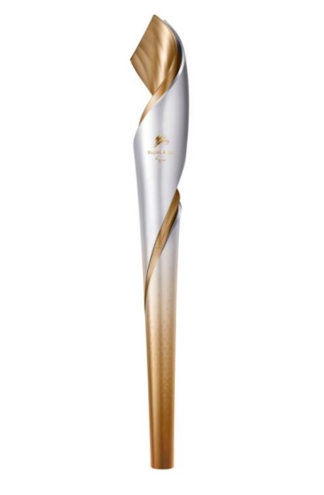 北京冬殘奧會(huì)的火炬為金色與銀色,寓意輝煌與夢(mèng)想。金色線條隨火炬轉(zhuǎn)動(dòng)而上下貫通,象征著激情的冰雪賽道,也代表著永恒的火種,光明向上,表達(dá)了人類生生不息、包容融合、向往和平的期望和“勇氣、決心、激勵(lì)、平等”的殘奧價(jià)值觀。