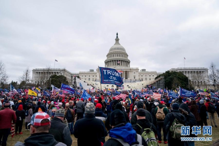 資料圖片:2021年1月6日,在美國首都華盛頓,美國總統(tǒng)特朗普的支持者舉行示威游行。新華社記者 劉杰 攝
