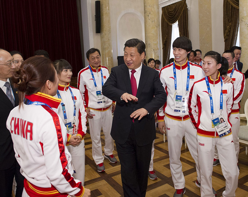 2014年2月7日,中共中央總書記、國家主席、中央軍委主席習(xí)近平在俄羅斯索契親切看望參加第二十二屆冬季奧林匹克運(yùn)動會的中國體育代表團(tuán)。這是習(xí)近平同運(yùn)動員親切交流。 新華社記者 黃敬文攝