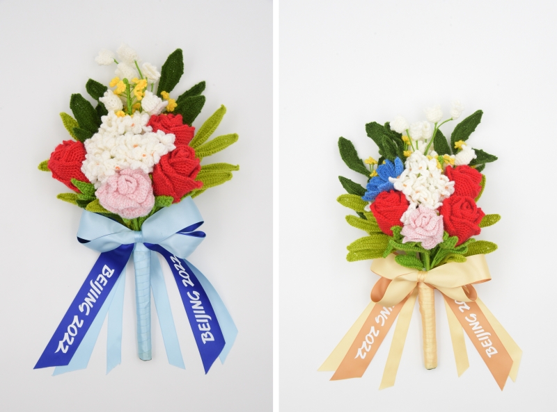 絨線花束既保留了奧運頒獎儀式中花束的形制,又踐行了可持續(xù)的理念,寓意著溫暖、祥和,可永久保存,成為“永不凋謝的奧運之花”。
