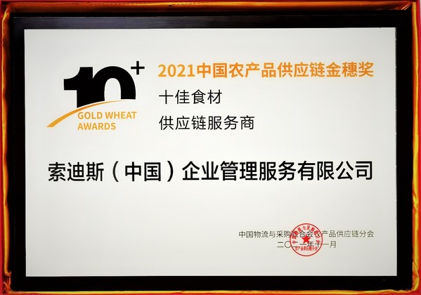 生活質(zhì)量服務(wù)的全球領(lǐng)軍企業(yè)索迪斯出席中國(guó)物流與采購(gòu)聯(lián)合會(huì)農(nóng)產(chǎn)品供應(yīng)鏈分會(huì)主辦的2021中國(guó)農(nóng)產(chǎn)品供應(yīng)鏈創(chuàng)新年會(huì),并榮獲“2021中國(guó)農(nóng)產(chǎn)品供應(yīng)鏈金穗獎(jiǎng) --十佳食材供應(yīng)鏈服務(wù)商”,進(jìn)一步彰顯索迪斯在農(nóng)產(chǎn)品供應(yīng)鏈服務(wù)領(lǐng)域的創(chuàng)新實(shí)力與冷鏈資源能力。