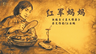 沙畫《我的第一個(gè)指導(dǎo)員》將觀眾帶入白色恐怖籠罩下的土地革命戰(zhàn)爭時(shí)期。片中,由于受到欺騙宣傳,村民對(duì)紅軍充滿恐懼,一聽紅軍要來,“我”和鄉(xiāng)親們慌忙往山里逃。一位未能留下姓名的紅軍指導(dǎo)員,用赤誠打消了村民們的敵意,并帶“我”踏上革命征程。