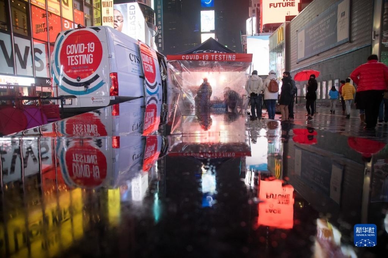 1月9日,人們在美國紐約時報廣場一處新冠檢測點排隊。