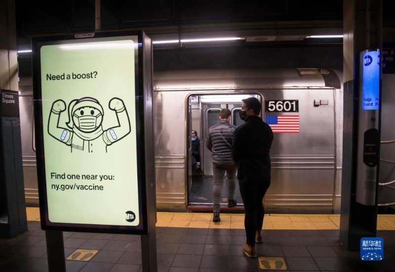 這是1月9日在美國紐約一處地鐵站內(nèi)拍攝的新冠疫苗加強針廣告?! ?/p>