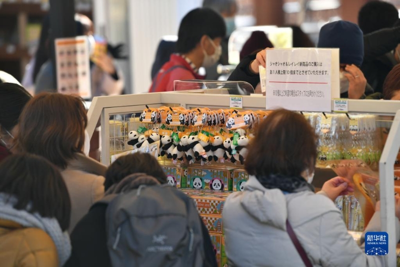 1月12日,游客在日本東京上野動(dòng)物園參觀大熊貓后選購大熊貓紀(jì)念品。
