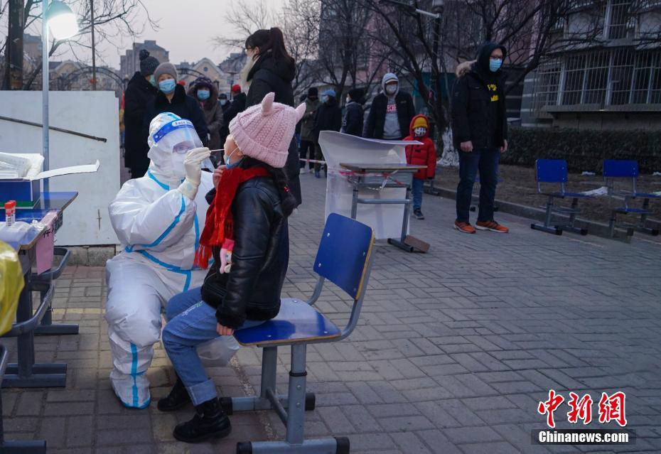 1月15日,天津市河?xùn)|區(qū)藍(lán)山園社區(qū)居民在進(jìn)行第三次全員核酸檢測(cè)。 中新社發(fā) 金立冬 攝