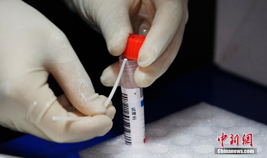 1月15日,天津市河?xùn)|區(qū)藍(lán)山園工作人員在區(qū)樣裝瓶。 中新社發(fā) 金立冬 攝