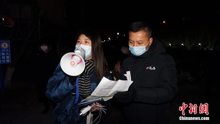 1月15日,天津市河?xùn)|區(qū)藍(lán)山園社區(qū)居民在進(jìn)行第三次全員核酸檢測(cè),工作人員在天未亮?xí)r就開(kāi)始布置任務(wù)。 中新社發(fā) 金立冬 攝