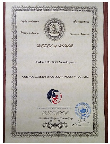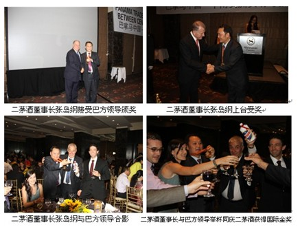 巴拿馬時(shí)間2013年4月19日下午6點(diǎn),在巴拿馬國(guó)際博覽會(huì)中南美洲國(guó)際洽談會(huì)上,由巴拿馬總統(tǒng)、工信部長(zhǎng)、亞太集團(tuán)總裁隆重宣布榮獲本屆醬香白酒國(guó)際金獎(jiǎng)單位:中國(guó)貴州金盾二茅酒,并親自為張島綱董事長(zhǎng)頒發(fā)巴拿馬自1915年后新世紀(jì)第二枚醬香白酒獎(jiǎng)?wù)拢┚凭茦I(yè)與世界客商及巴拿馬人民共同鑒證金盾二茅酒重現(xiàn)中國(guó)醬香白酒榮耀的輝煌時(shí)刻。