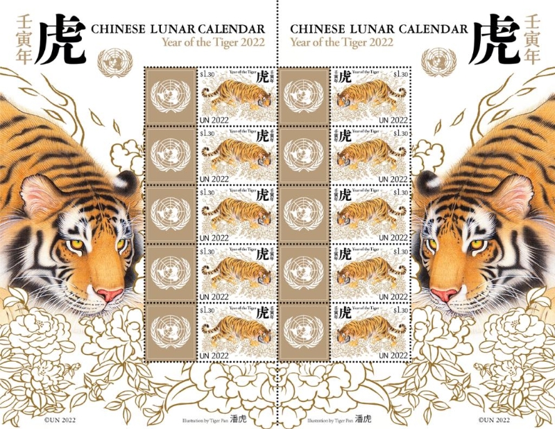 聯(lián)合國郵政管理局1月21日在紐約發(fā)行中國農(nóng)歷壬寅虎年特別版郵票版張,慶祝中國農(nóng)歷新年的到來。這是該郵票版張樣圖。新華社發(fā)