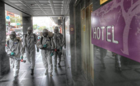 圖為防疫人員消殺。(臺灣《中時電子報》資料照)