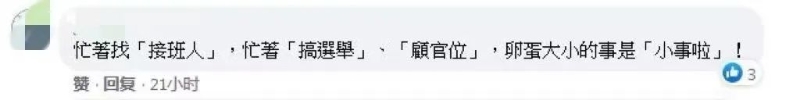 有民眾在社交媒體留言,直指民進黨當局“忙著找‘接班人’,忙著‘搞選舉’、‘顧官位’,卵蛋大小的事是‘小事啦’!”?!?/p>