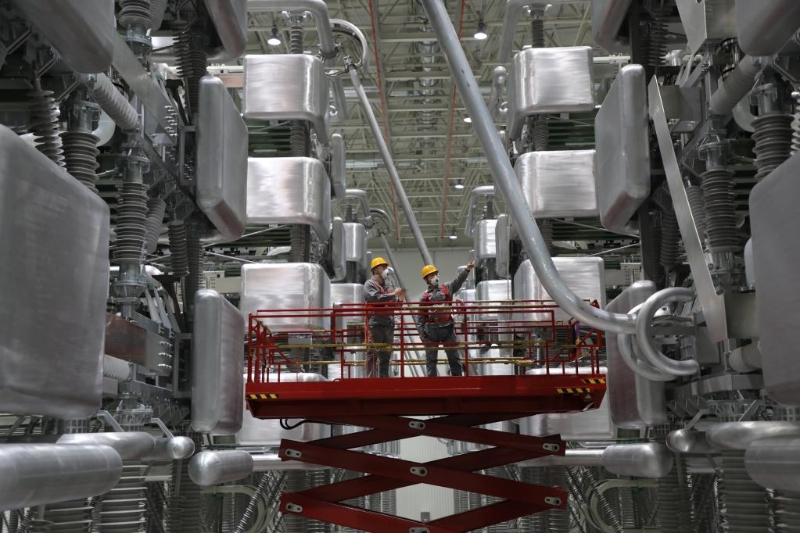 2021年8月22日,張北柔性直流電網(wǎng)工程首檢期間,運(yùn)維人員在閥廳內(nèi)檢查換流閥閥塔子模塊更換進(jìn)度。王宇杰攝