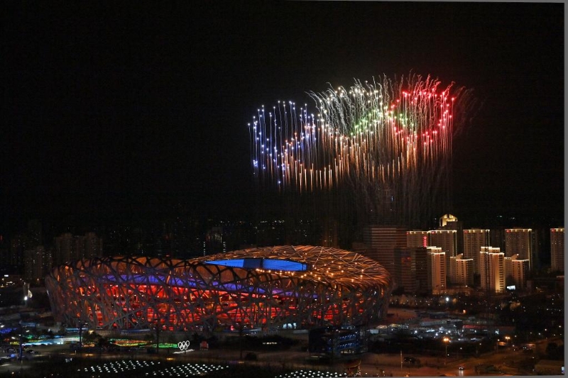 冬奧焰火:“雙線五環(huán)”寓意“雙奧之城”