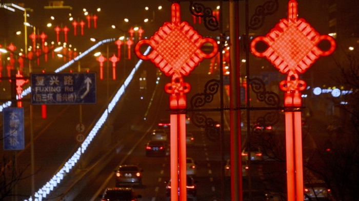首都街頭張燈結(jié)彩,充滿濃濃的年味。圖為1月30日拍攝的北京市復(fù)興路夜景。(新華社記者李欣攝)