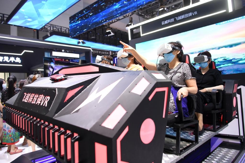 觀眾在2021智博會上通過VR技術(shù)體驗重慶美景。新華社記者 唐奕 攝