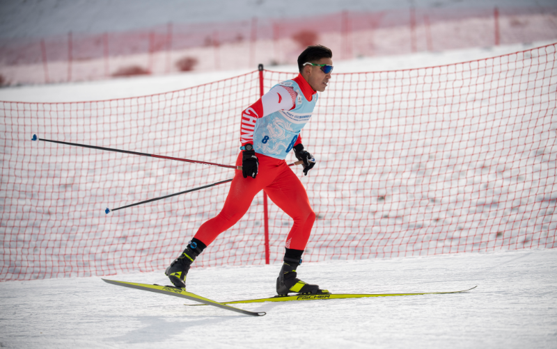 2021年11月22日,吐爾松江在2021-2022國際雪聯(lián)越野滑雪積分系列賽溫泉站男子個人10公里(自由技術(shù))的比賽中。新華社記者胡虎虎攝
