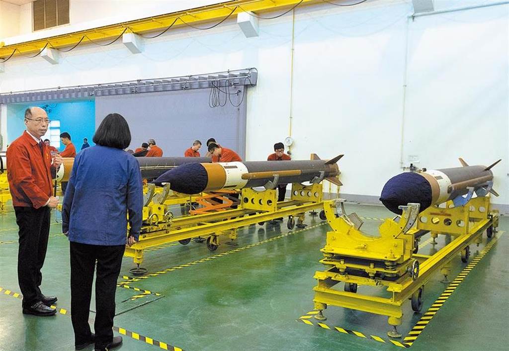 蔡英文曾親自前往“中科院”參觀天弓導(dǎo)彈生產(chǎn)情形。(中時數(shù)據(jù)庫)