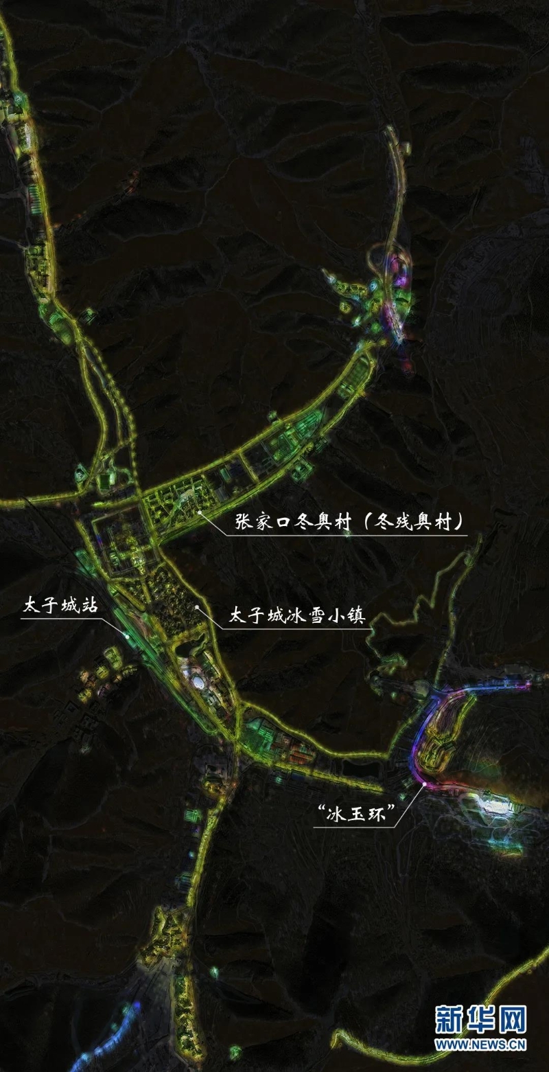 使用國(guó)產(chǎn)衛(wèi)星數(shù)據(jù)制作的崇禮冬奧中心夜景。