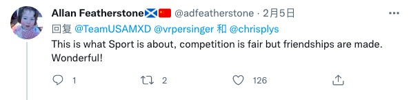 稱贊“中國同行們展示了精彩的體育精神”