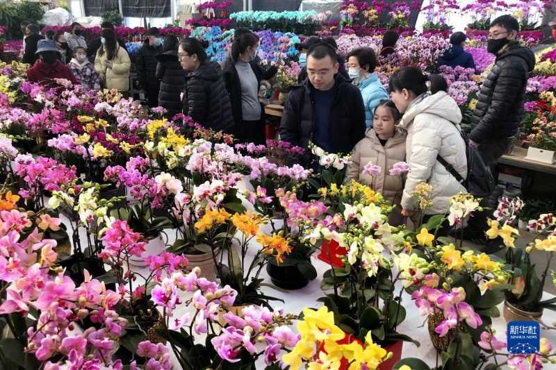 1月16日,顧客在青島市嶗山區(qū)一花卉市場“年宵花節(jié)”上挑選鮮花。新華社記者 李紫恒 攝