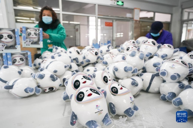 2月8日,工人在江蘇省啟東市一家北京冬奧會(huì)吉祥物“冰墩墩”特許生產(chǎn)商的車間里忙碌。新華社記者 季春鵬 攝
