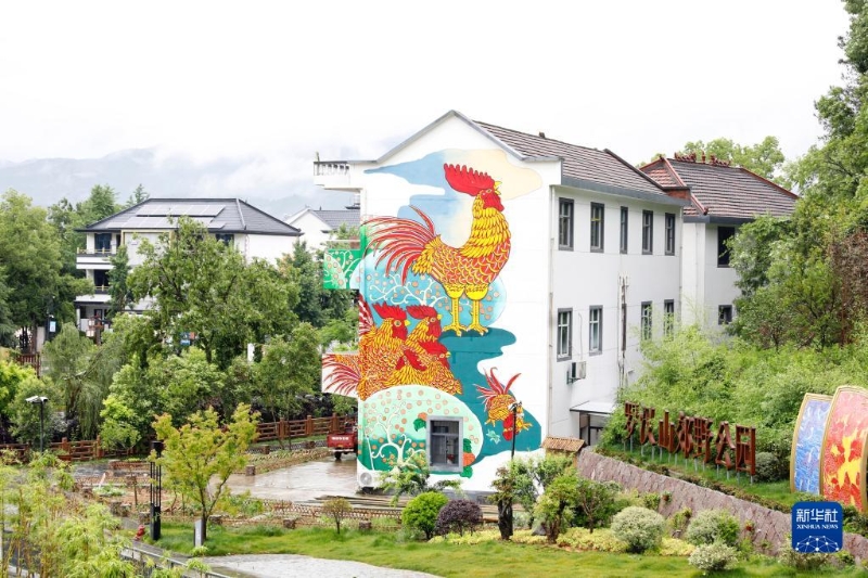 這是浙江衢州市柯城區(qū)溝溪鄉(xiāng)余東村建筑墻壁上的農(nóng)民畫(2021年5月11日攝)。新華社發(fā)