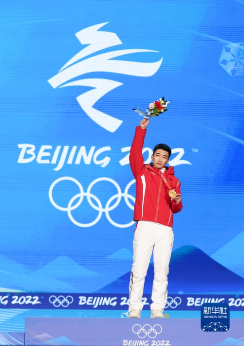 2月12日,冠軍中國選手高亭宇在獎(jiǎng)牌頒發(fā)儀式上。新華社記者程婷婷攝