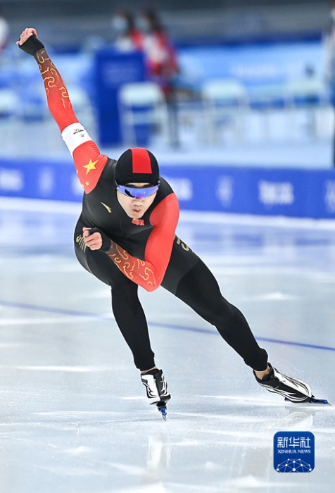 2月12日,中國選手高亭宇在北京冬奧會速度滑冰男子500米決賽中。新華社記者熊琦攝