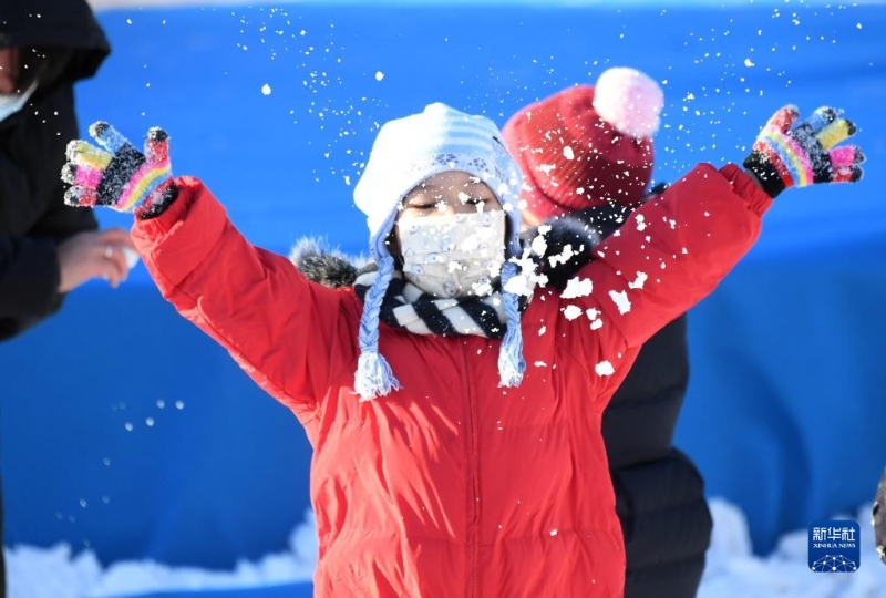 小朋友在北京國(guó)際鮮花港冰雪嘉年華游玩(1月8日攝)。新華社記者 任超 攝
