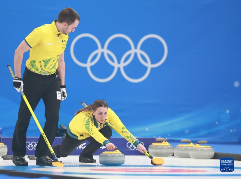 2月6日,澳大利亞隊選手塔莉·吉爾(右)、迪安·休伊特在比賽中。新華社記者劉續(xù)攝