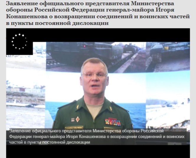 俄羅斯國(guó)防部官網(wǎng)2月15日表示,一些駐扎在俄烏邊境的部隊(duì)在完成演習(xí)后將返回基地。(俄羅斯國(guó)防部聲明截圖)