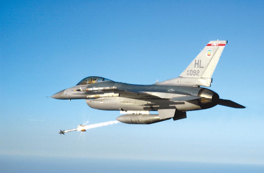 圖為F-16C戰(zhàn)斗機(jī)上發(fā)射AIM-9M響尾蛇尋熱導(dǎo)彈訓(xùn)練情形。(摘自美國(guó)空軍官網(wǎng))圖片來(lái)源:臺(tái)灣《中時(shí)電子報(bào)》