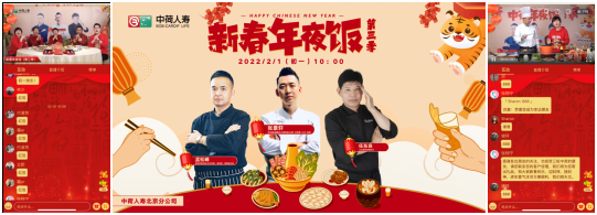 一年又一年,春節(jié)最團圓。在虎年新春假期期間,中荷人壽北京分公司開展了新春年夜飯活動,本次邀請了京城名廚任東良老師、孟松峰老師以及張景軒老師從初一至初六每天現(xiàn)場烹飪一道特色菜品,有北京特色菜、經(jīng)典川菜、西式粵菜、創(chuàng)新魯菜、地道湖北菜以及別樣湘菜,為客戶持續(xù)帶來精彩紛呈的直播活動。