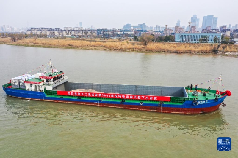 2月22日,長江流域首艘3000噸級純電動貨船“船聯(lián)1號”在南京首航。這艘船由燃油貨船改造而成,把電能作為整艘船的唯一能源,實現(xiàn)零排放、低噪音、無污染。