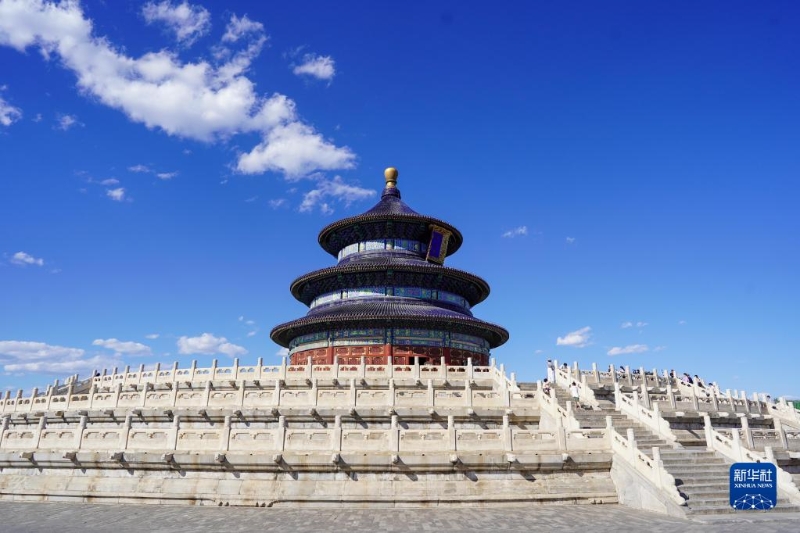 這是藍天白云下的北京天壇祈年殿(2021年6月4日攝)。新華社記者 陳曄華 攝