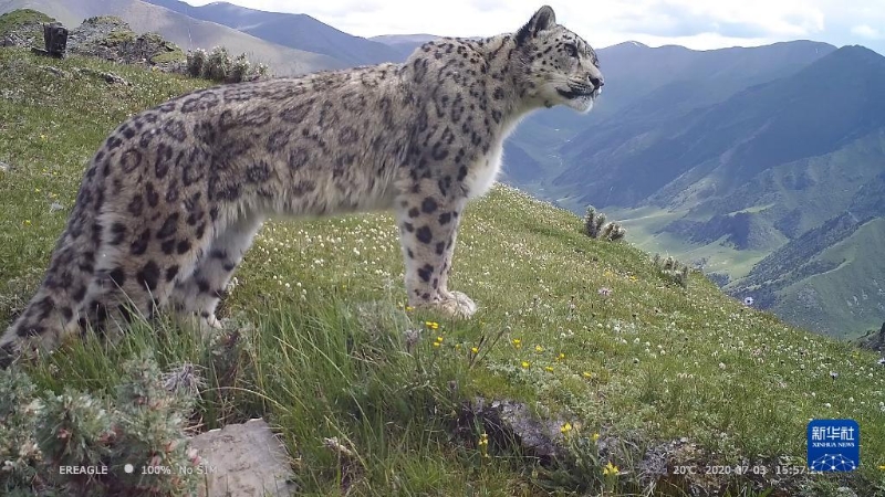 這是三江源國家公園內(nèi)紅外相機捕捉到的雪豹(2020年7月3日攝)。新華社發(fā)(三江源國家公園管理局供圖)